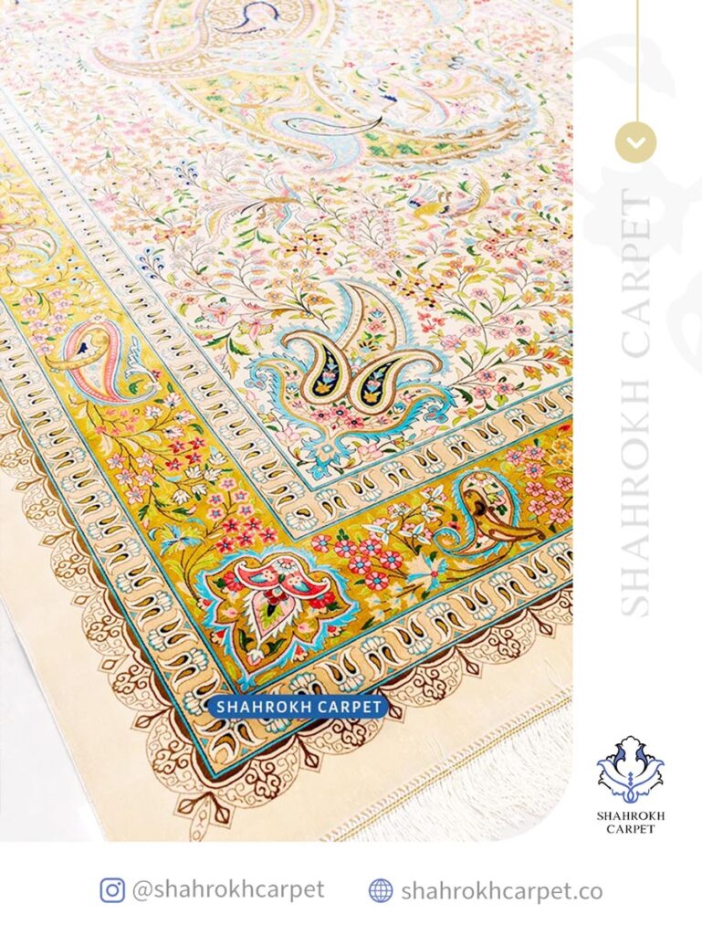 Shahrokh Company manufactures them as an affordable substitute for handmade silk rugs. Since handmade silk rugs are too expensive, these semi-handmade silk rugs could be considered as an appropriate substitute for those silk Persian rug lovers who can not pay for pure natural silk rugs. Shahrokh machine-made silk rugs look as shiny and luxurious. Therefore, they are usually recommended for luxurious decorations. For example, you could use them in a dining room in a large house or in a palace.